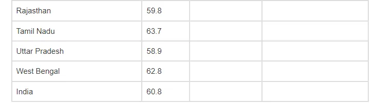 Source: Registrar General of India (2003) SRS Based Abridged Lefe Tables. SRS Analytical Studies, Report No. 3 of 2003, New Delhi: Registrar General of India. The data are for the 1995-99 period; states subsequently divided are therefore included in their pre-partition states (Chhatisgarh in MP, Uttaranchal in UP and Jharkhand in Bihar)