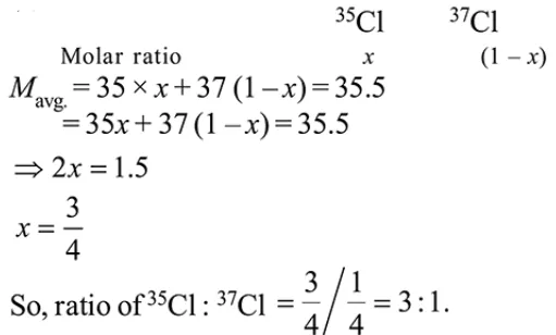 The average molar mass of chlorine is $35.5 \mathrm{~g} \mathrm{~mol}^{-1}$. The ratio of ${ }^{35} \mathrm{Cl}$ to ${ }^{37} \mathrm{Cl}$ in naturally occrring chlorine is close to :