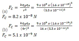 (b) When the atom goes into its first excited state the average separation between the proton and the electron increases to four times its value in the ground state. What is the Coulomb force in this state?
