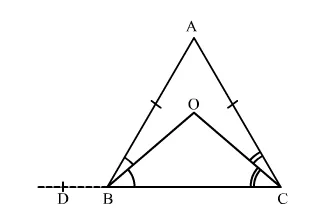 Given: In an isosceles ΔABC, AB = AC, BO and CO are the bisectors of ∠ABC and ∠ACB, respectively.