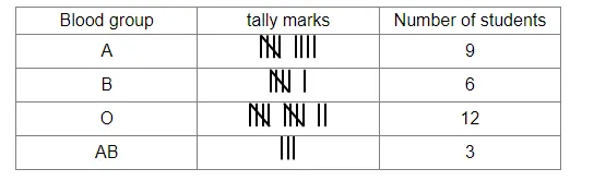 (ii) Find out which is the most common and which is the rarest blood group among these students.