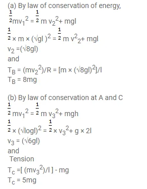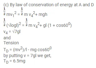 The bob of a pendulum at rest is given a sharp hit to impart a horizontal velocity .V10 gl, where 1 is the length of the pendulum. Find the tension in the string when