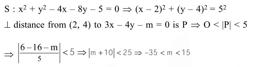 The circle $x^{2}+y^{2}=4 x+8 y+5$ intersects the line $3 x-4 y=m$ at two distinct points if :-