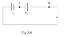 When the loop is considered in the anti-clockwise direction, E1 > E2 which means VB > VA