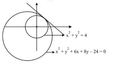 The common tangent to the circles $x^{2}+y^{2}=4$ and $x^{2}+y^{2}+6 x+8 y-24=0$ also passes through the point: