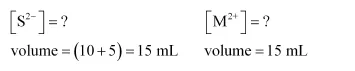 $\left[\mathrm{M}^{2+}\right]=\frac{0.04 \times 5}{15}=1.33 \times 10^{-2} \mathrm{M}$