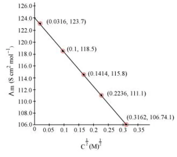 Then, κ = 11.85 × 10−4 S cm−1, c½ = 0.1 M1/2