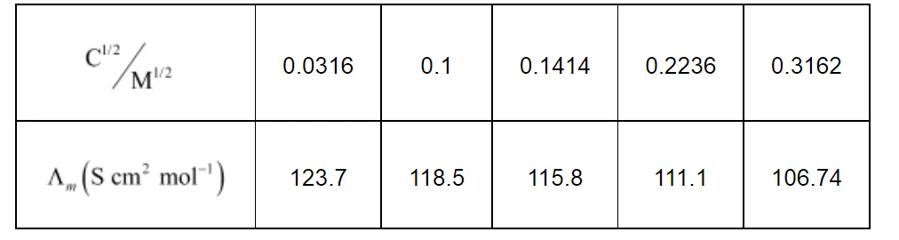 Then, κ = 1.237 × 10−4 S cm−1, c½ = 0.0316 M1/2