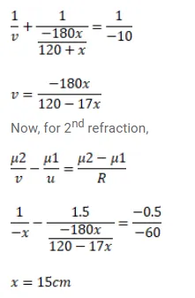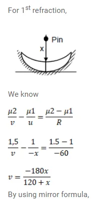 (b) If the concave part is filled with water (refractive index $=4 / 3$ ) Find the distance through which the pin should be moved so that the image of the pin again coincides with the pin.