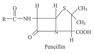 Penicillin contains - COOH group so it will give sodium hydrogen carbonate $\left(\mathrm{NaHCO}_{3}\right)$ test.