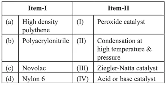 Question: The correct match between Item - I and Item- II is :