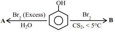 The correct options for the products $\mathbf{A}$ and $\mathbf{B}$ of the following reactions are :