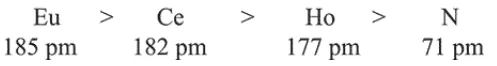 $\mathrm{N}>\mathrm{Ce}>\mathrm{Eu}>\mathrm{Ho}$