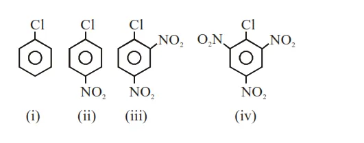 More $\mathrm{No}$. of $\mathrm{NO}_{2}$ substituted aromatic halide, increase the rate of nucleophile substitution reaction in aromatic halides.