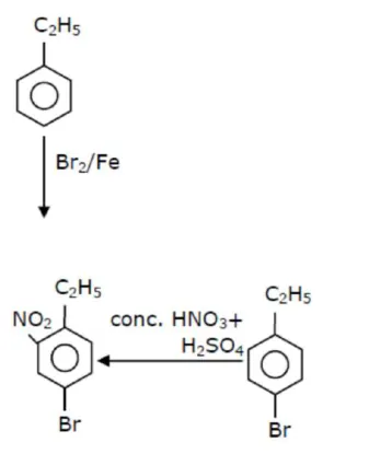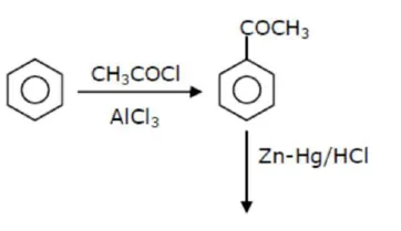 $\mathrm{CH}_{3} \mathrm{COCl} / \mathrm{AlCl}_{3}, \mathrm{Zn}-\mathrm{Hg} / \mathrm{HCl}, \mathrm{Br}_{2} / \mathrm{AlBr}_{3}, \mathrm{HNO}_{3} / \mathrm{H}_{2} \mathrm{SO}_{4}$