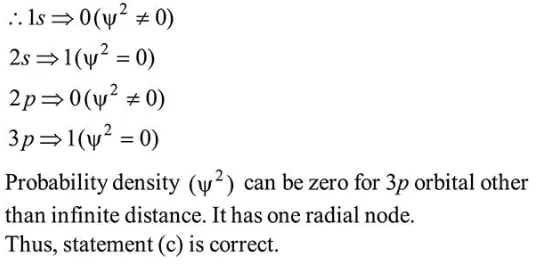 Question: The correct statement about probability density (except at infinite distance from nucleus) is :