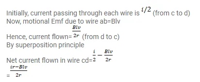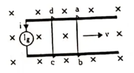 The current generator $I_{g}$, shown in figure, sends a constant current i through the circuit. The wire cd is fixed and ab is made to slide on the smooth, thick rails with a constant velocity v towards right. Each of these wires has resistance r. Find the current through the wire cd.