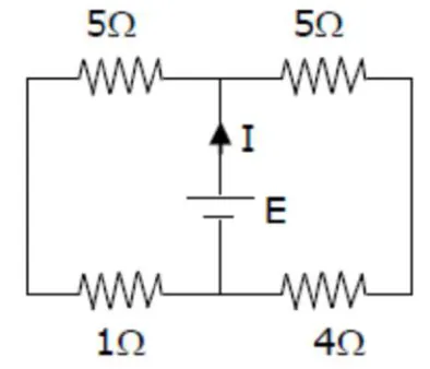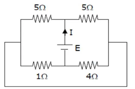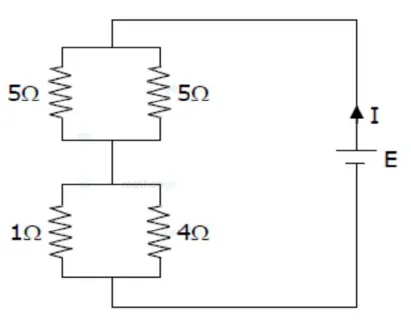 $\mathrm{I}=\frac{\mathrm{E}}{\mathrm{R}_{\mathrm{eq}}}=\frac{10 \mathrm{E}}{33}$