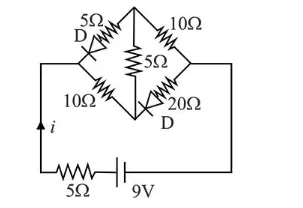 (3) Both the diodes are reverse biased, so, there is no flow of current through $5 \Omega$ and $20 \Omega$ resistances.