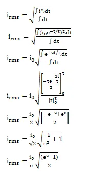 The current in the discharging LR circuit is given by $\mathrm{i}=\mathrm{i}_{0} \mathrm{e}^{-\mathrm{t} / \tau}$ where $T$ is the time constant of the circuit. Calculate the rms current for the period $t=0$ to $t=T$.