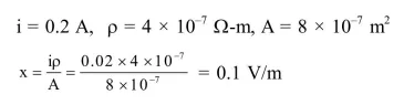 The current in the primary circuit of a potentiometer is $0.2 \mathrm{~A}$. The specific resistance and crosssection of the potentiometer wire are $4 \times 10^{-7} \mathrm{ohm}$ metre and $8 \times 10^{-7} \mathrm{~m}^{2}$ respectively. The potential gradient will be equal to :-