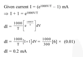 The current voltage relation of diode is given by $\mathrm{I}=\left(\mathrm{e}^{1000 \mathrm{~V} / \mathrm{T}}-1\right) \mathrm{mA}$, where the applied voltage $\mathrm{V}$ is in volts and the temperature $\mathrm{T}$ is in degree Kelvin. If a student makes an error measuring $\pm 0.01 \mathrm{~V}$ while measuring the current of $5 \mathrm{~mA}$ at $300 \mathrm{~K}$, what will be error in the value of current in mA?