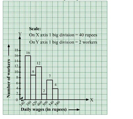 We will represent the class intervals [daily wages (in rupees)] along the x-axis & the corresponding frequencies [number of workers] along the y-axis.
