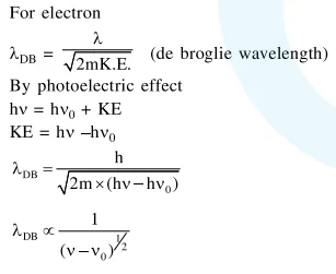 Question: The de Broglie wavelength $(\lambda)$ associated with a photoelectron varies with the frequency $(v)$ of the incident radiation as, $\left[v_{0}\right.$ is thrshold frequency]: