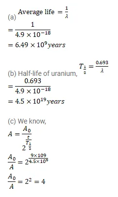 (c) By what factor does the activity of $a^{235} \mathrm{U}$ sample decrease in $9 \times 10^{8}$ years?