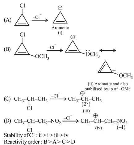 Given reaction is $S_{N}$ 1 reaction. In $S_{N}$ l reaction Rate of reaction $\propto$ Stability of $\mathrm{C}^{+}$