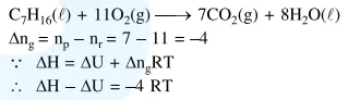 Question: The difference between $\Delta \mathrm{H}$ and $\Delta \mathrm{U}(\Delta \mathrm{H}-\Delta \mathrm{U})$, when the combustion of one mole of heptane (1) is carried out at a temperature $T$, is equal to:
