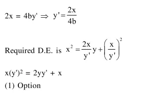 Question: The differential equation of the family of curves, $x^{2}=4 b(y+b), b \in R$, is