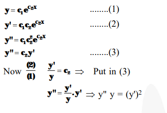 Question: The differential equation which represents the family of curves $y=c_{1} e^{c_{2} x}$, where $c_{1}$ and $c_{2}$ are arbitrary constants, is :-