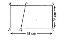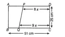 We have dimensions of a recstangle $A B C D$ as $51 \mathrm{~cm}$ and $25 \mathrm{~cm}$. Also, in trapezium $P Q C D$, parallel sides $Q C$ and $P D$ are in the ratio $9: 8$.