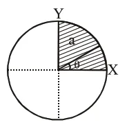The disc of mass $M$ with uniform surface mass density $\sigma$ is shown in the figure. The centre of mass of the quarter disc (the shaded area) is at the position $\frac{\mathrm{x}}{3} \frac{\mathrm{a}}{\pi}, \frac{\mathrm{x}}{3} \frac{\mathrm{a}}{\pi}$ where $\mathrm{x}$ is___________