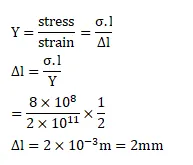 The elastic limit of steel is $8 \times 10^{8} \mathrm{~N} / \mathrm{m}^{2}$ and it's Young's modulus $2 \times 10^{11} \mathrm{~N} / \mathrm{m}^{2}$. Find the maximum elongation of a halfmeter steel wire that can be given without exceeding the elastic limit.