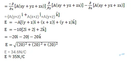 (c) If $A$ is $10 S I$ units, find the magnitude of the electric field at $(1 \mathrm{~m}, 1 \mathrm{~m}, 1 \mathrm{~m})$.