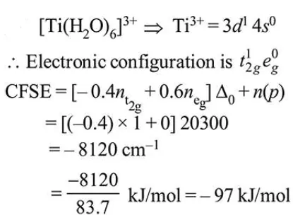 The electronic spectrum of $\left[\mathrm{Ti}\left(\mathrm{H}_{2} \mathrm{O}\right)_{6}\right]^{3+}$ shows a single broad peak with a maximum at $20,300 \mathrm{~cm}^{-1}$. The crystal field stabilization energy (CFSE) of the complex ion, in $\mathrm{kJ} \mathrm{mol}^{-1}$, is : $\left(1 \mathrm{~kJ} \mathrm{~mol}^{-1}=83.7 \mathrm{~cm}^{-1}\right)$
