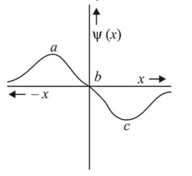 Probability of finding an electron will have maximum value at both 'a' and 'c'. There is zero probability of finding an electron at ' $b$ '.