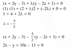 Question: The equation of a plane through the line of intersection of the planes $x+2 y=3, y-2 z+1=0$, and perpendicular to the first plane is :