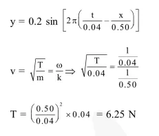 $\mathrm{y}=0.02(\mathrm{~m}) \sin \left[2 \pi\left(\frac{\mathrm{t}}{0.04(\mathrm{~s})}-\frac{\mathrm{x}}{0.50(\mathrm{~m})}\right)\right]$. The tension in the string is :
