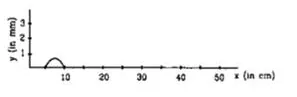 The Figure shows a wave pulse at $t=0$. The pulse moves to the right with a speed at $10 \mathrm{~cm} / \mathrm{s}$. Sketch the shape of the string at $t=1 \mathrm{~s}, 2 \mathrm{~s}, 3 \mathrm{~s}$.