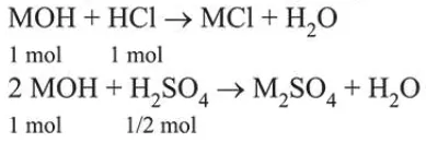 The first and second ionisation enthalpies of a metal are 496 and $4560 \mathrm{~kJ} \mathrm{~mol}^{-1}$, respectively. How many moles of $\mathrm{HCl}$ and $\mathrm{H}_{2} \mathrm{SO}_{4}$, respectively, will be needed to react completely with 1 mole of the metal hydroxide?