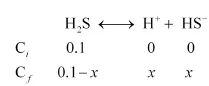 Then, $K_{a_{1}}=\frac{\left[\mathrm{H}^{+}\right]\left[\mathrm{HS}^{-}\right]}{\left[\mathrm{H}_{2} \mathrm{~S}\right]}$