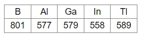 The first ionization enthalpy values (in $\mathrm{kJmol}^{-1}$ ) of group 13 elements are