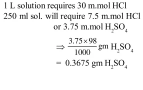 The flucculation value of $\mathrm{HCl}$ for arsenic sulphide sol. is $30 \mathrm{~m}$ mole $\mathrm{L}^{-1}$. If $\mathrm{H}_{2} \mathrm{SO}_{4}$ is used for the flocculation of arsenic sulphide, the amount, in grams, of $\mathrm{H}_{2} \mathrm{SO}_{4}$ in $250 \mathrm{ml}$ required for the above purpose is
