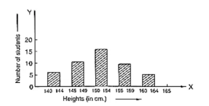 The following bar graph represents the heights (in cm) of 50 students of Class XI of a particular school.