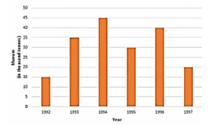 (ii) It is seen from the bar graph that the height of the 3s bar from the left is maximum, which is corresponding to the year 1994. So in 1994, the quantity manufactured by the company was maximum.