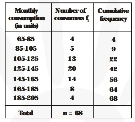 The following frequency distribution gives the monthly consumption of electricity of 68 con sumers of a locality.