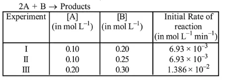 For the reaction, $2 \mathrm{~A}+\mathrm{B} \rightarrow$ Products